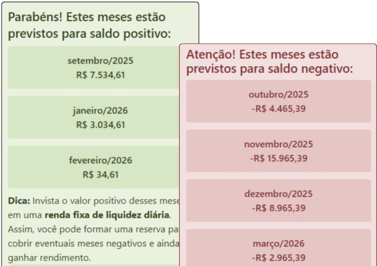 Sim. O sistema analisa seu fluxo financeiro em tempo real e oferece recomendações sob medida, como cortes de gastos, oportunidades de investimento e projeções de longo prazo.