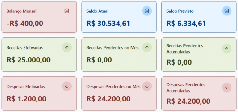 Com o Monedo, você tem uma visão clara e detalhada das suas receitas, despesas e saldo previsto. Acompanhe seu fluxo financeiro em tempo real e tome decisões inteligentes com dados precisos e organizados.